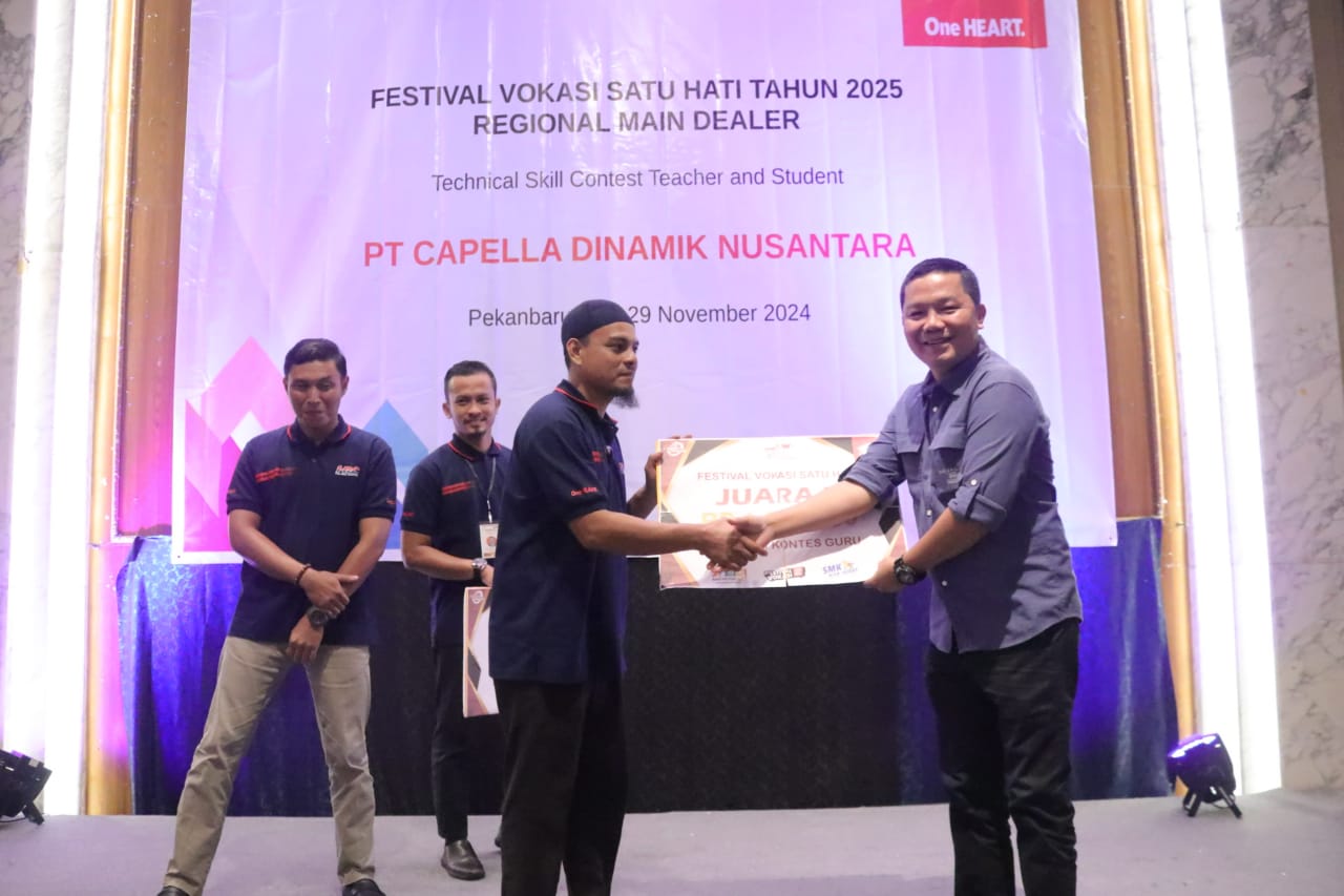 Sebagai usaha untuk memastikan lulusan SMK Riau yang kompeten, Bidang Pembinaan SMK Dinas Pendidikan Provinsi Riau bekerjasama sama Regional Main Dealer Honda PT. Capella Dinamik Nusantara (PT. CDN) melaksanakan Festival Vokasi Satu Hati untuk kategori Guru dan Siswa dari tanggal 28 s.d 29 November 2024.